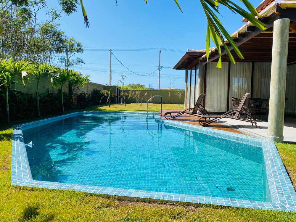 Casa independente, novíssima a poucos metros da Rua das Pedras, com piscina e churrasqueira privativa, lavanderia chuveirão e banheiro externo.