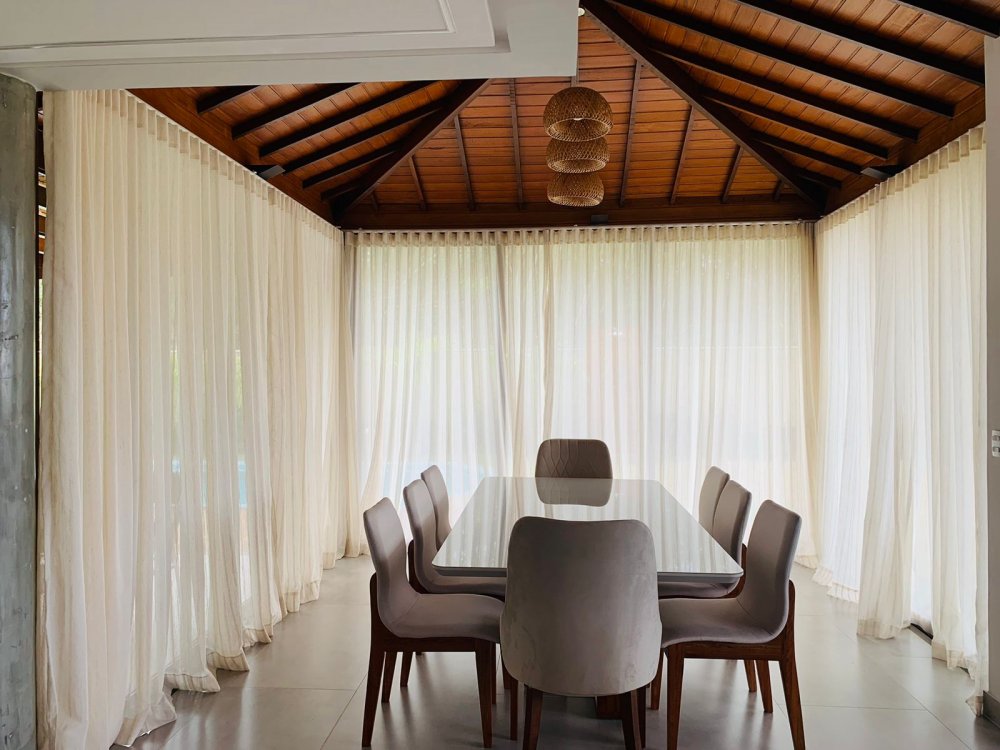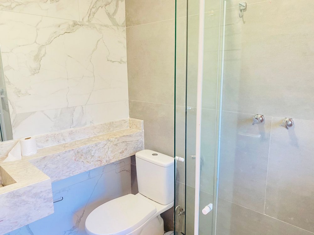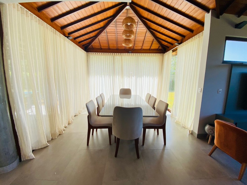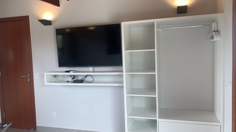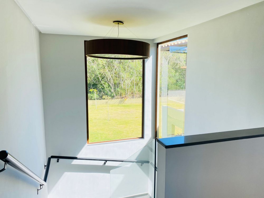 No piso inferior temos uma suíte completa também, lavabo, jardim de inverno , sala de tv de 70 " e cozinha em conceito aberto, toda equipada com filtro, microondas, geladeira, cafeteira e tudo para cozinhar.
