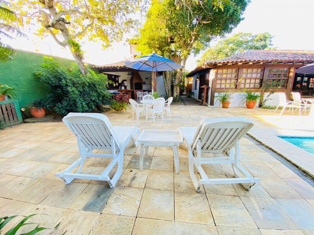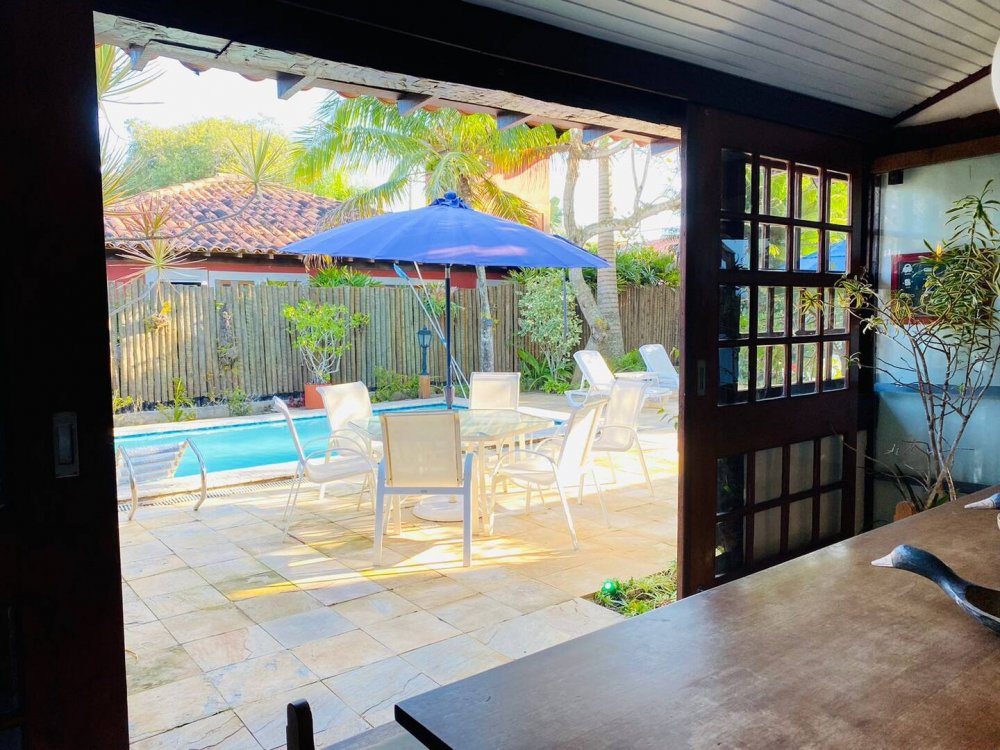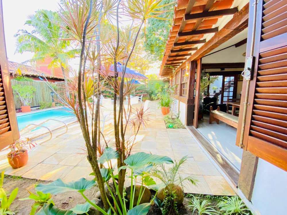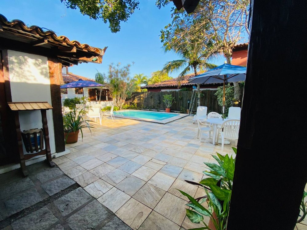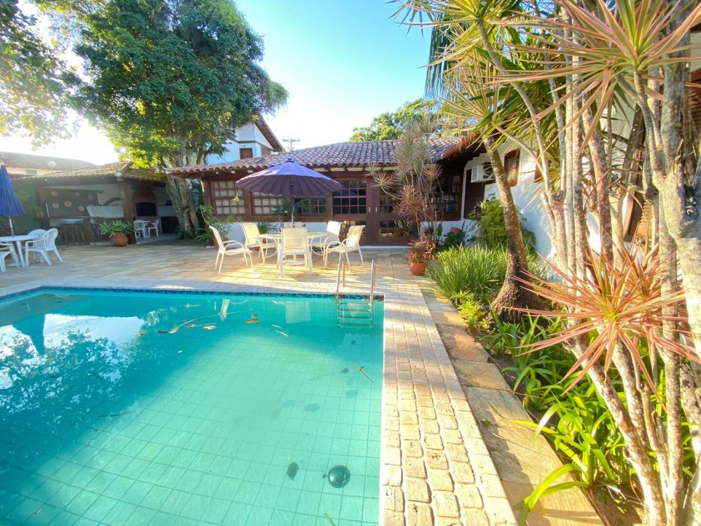 Casa super espaçosa, arejada e ampla, dividida em 3 salas e área de jantar que se integra a piscina quando portas abertas. Cozinha bem equipada , lavanderia com maquina de lavar e área e de serviço. Suítes com ar condicionado e ventilares de teto. Quarto de solteiro próximo a cozinha com banheiro ao lado. Sauna, piscina e churrasqueira privativas. Tudo isso em condomínio com 9 casas, seguro com porteiro e vigias 24h, a 50m da praia de Manguinhos, mercados, hortifrúti, Mac Donald e outros.
