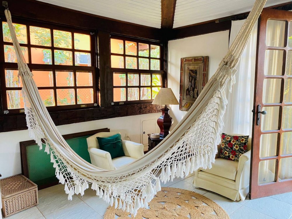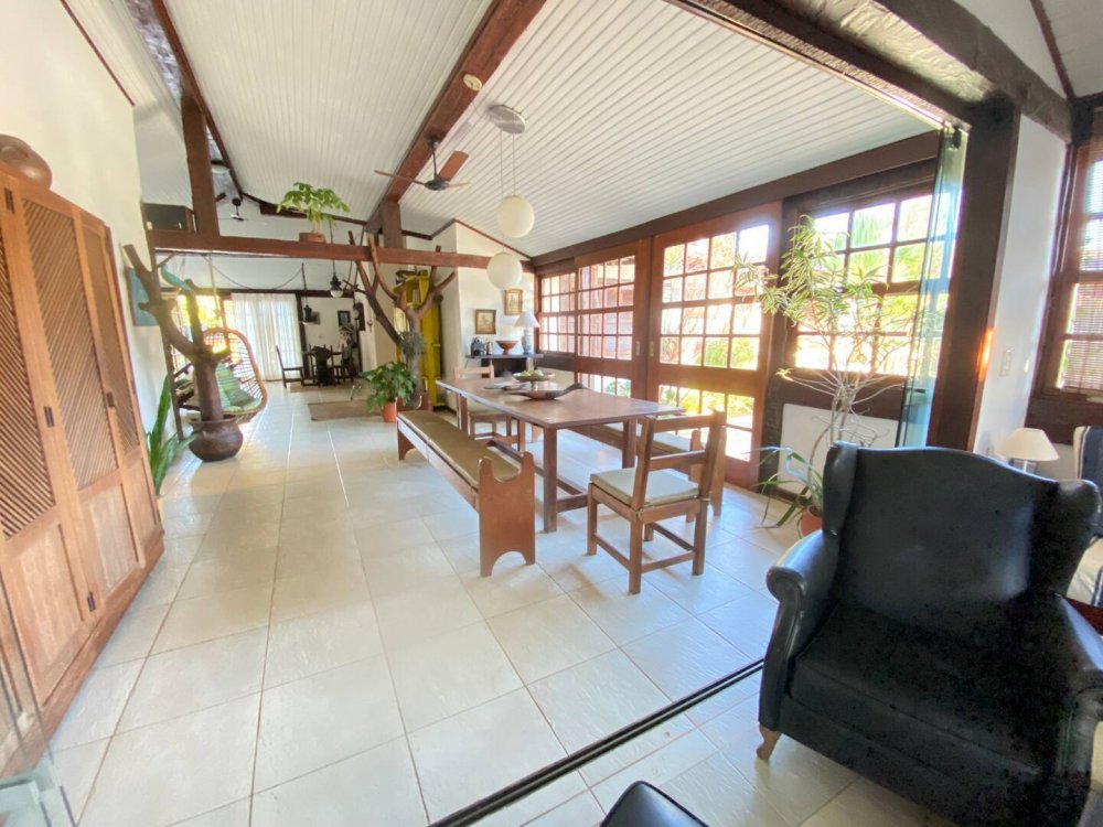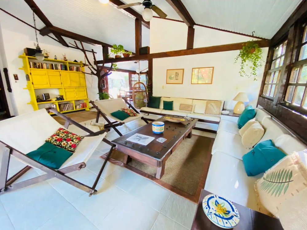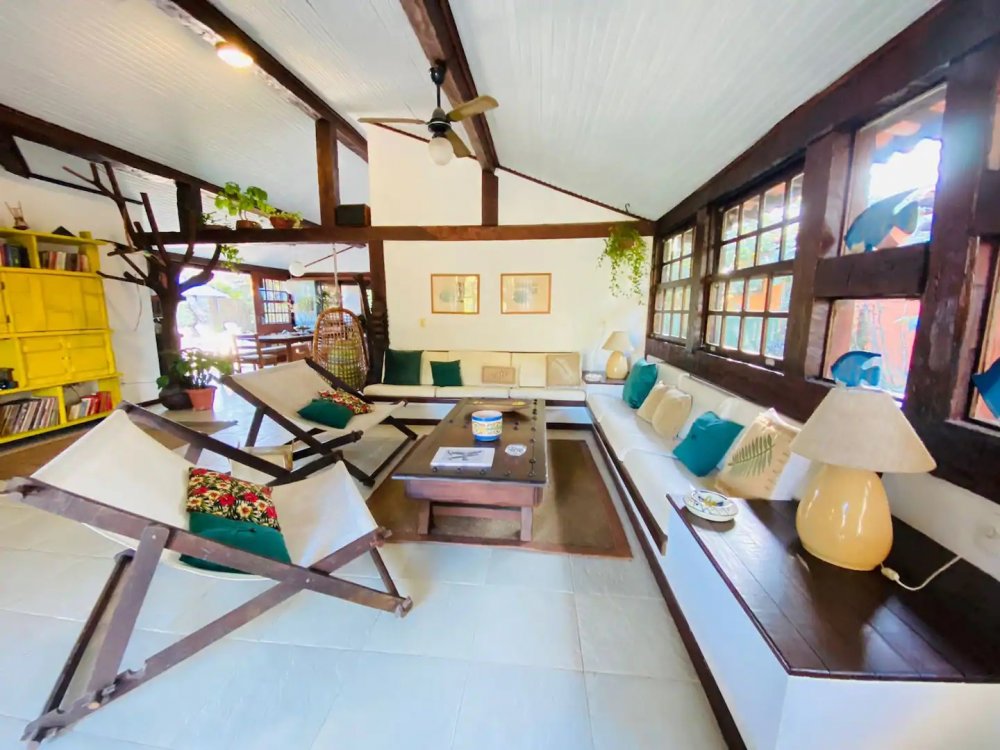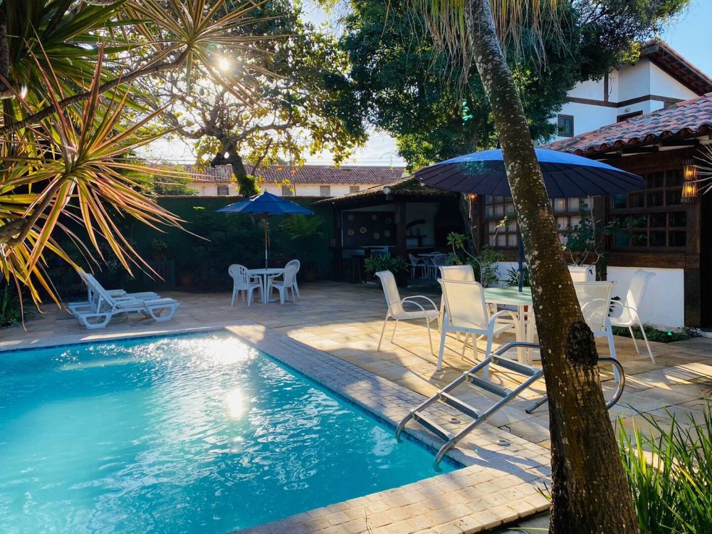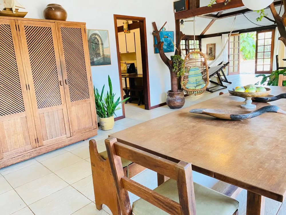 Casa super espaçosa, arejada e ampla, dividida em 3 salas e área de jantar que se integra a piscina quando portas abertas. Cozinha bem equipada , lavanderia com maquina de lavar e área e de serviço. Suítes com ar condicionado e ventilares de teto. Quarto de solteiro próximo a cozinha com banheiro ao lado. Sauna, piscina e churrasqueira privativas. Tudo isso em condomínio com 9 casas, seguro com porteiro e vigias 24h, a 50m da praia de Manguinhos, mercados, hortifrúti, Mac Donald e outros.